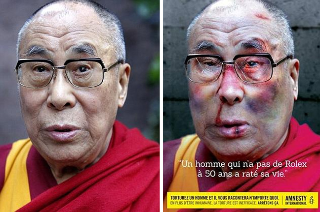 Στην αφίσα του Δαλάι Λάμα διαβάζουμε: «Ένας άνθρωπος που στα 50 του χρόνια δεν έχει αποκτήσει ένα ρολόι Rolex έχει αποτύχει στη ζωή του».