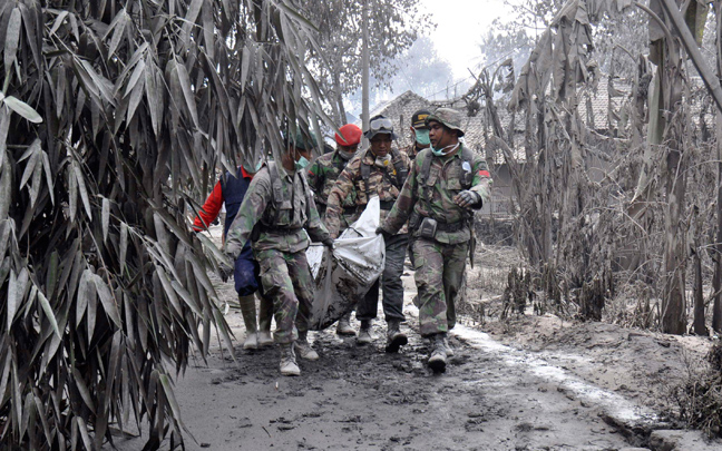 Πενήντα τέσσερις άνθρωποι βρήκαν τραγικό θάνατο όταν στάχτη και καυτά αέρια εκτοξεύτηκαν σε ύψος 4 χιλιομέτρων από τον κρατήρα του, ανεβάζοντας σε τουλάχιστον 100 τον απολογισμό των θυμάτων.