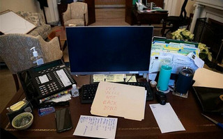 Μια φωτογραφία που κάνει τον γύρο του διαδικτύου και δείχνει διαδηλωτή του Τραμπ να έχει καθίσει με τα πόδια πάνω στο γραφείο της Πελόζι.