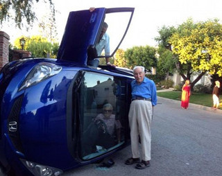όπως διαβάζουμε στη MailOnline, ο ηλικιωμένος άνδρας κατάφερε και βρήκε από το αμάξι, χωρίς την παραμικρή γρατζουνιά, ωστόσο η γυναίκα του παρέμεινε παγιδευμένη μέσα. Ωστόσο μέχρι να απεγκλωβιστεί και η γιαγιά, ο παππούς είπε να μη χάσει χρόνο και πόζαρε για αναμνηστικές φωτογραφίες δίπλα στο αναποδογυρισμένο αυτοκίνητο.