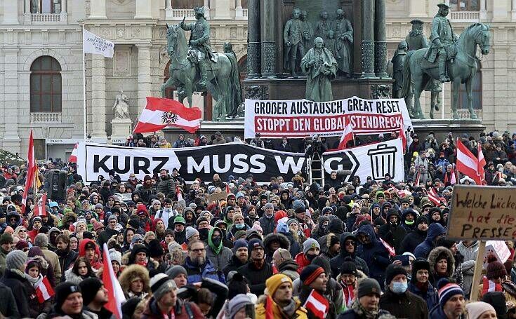 Οι διαδηλωτές που συγκεντρώθηκαν σε διαφορετικά σημεία της αυστριακής πρωτεύουσας κατήγγειλαν τους περιορισμούς που έχουν επιβληθεί από τον Μάρτιο στου πληθυσμό για την αντιμετώπιση της επιδημίας και την κυβέρνηση του Σεμπάστιαν Κουρτς.