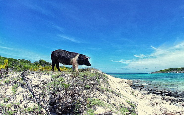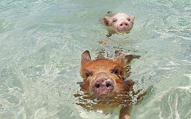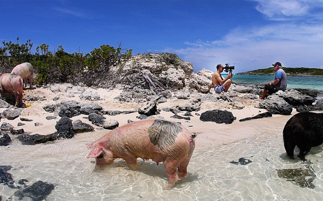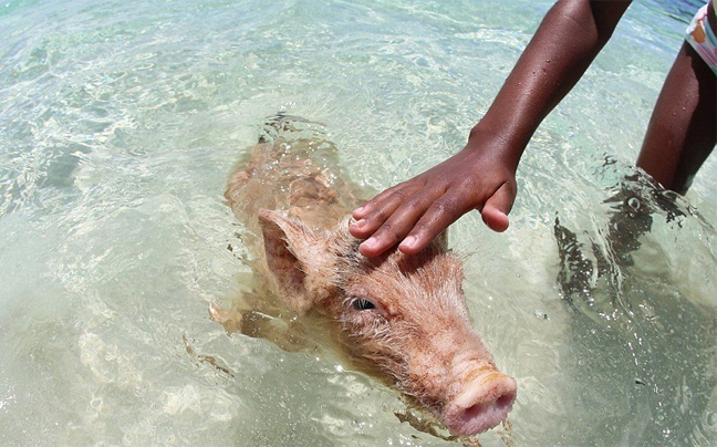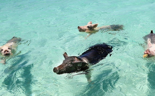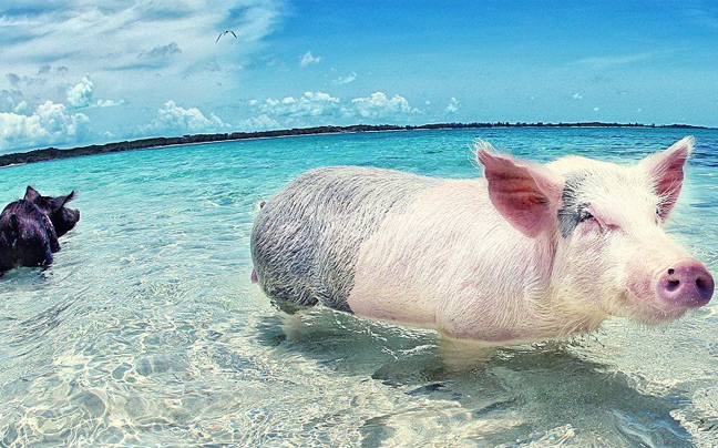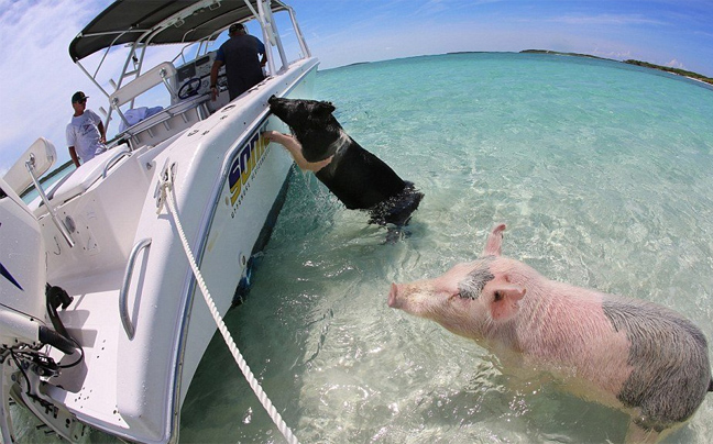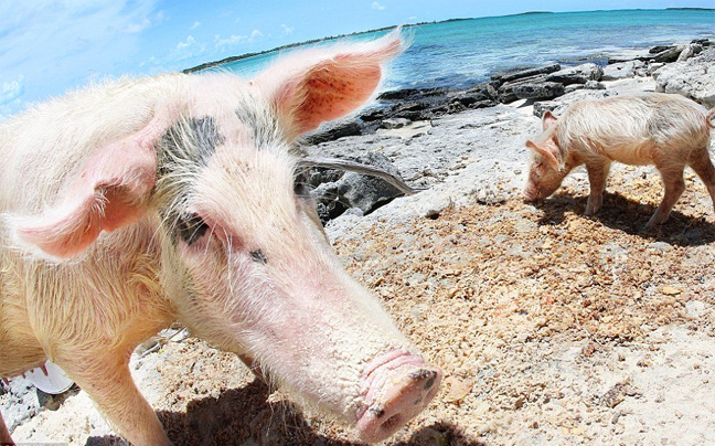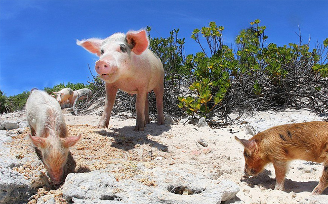 Πρόκειται για μια… οικογένεια γουρουνιών, η οποία ζει στην περιοχή της Καραϊβικής και έχει γίνει η… μασκότ της. Οι τουρίστες πηγαίνουν στην παραλία μόνο για να τα δουν. Μάλιστα, οι κάτοικοι μετονόμασαν την ακτή από Big Major Cay σε Pig Island (Νησί των Γουρουνιών). Πολλοί λένε ότι τα γουρούνια βρέθηκαν στο νησί, καθώς τα έφεραν ναύτες οι οποίοι θεώρησαν ότι θα αποτελούσαν μια πηγή τροφής.