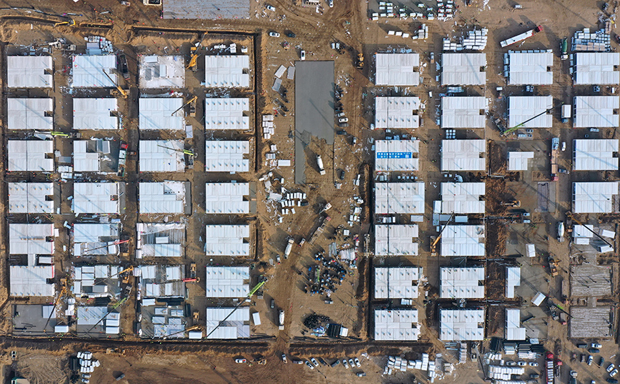 Οι σκηνές θύμιζαν την ανέγερση μέσα σε λίγες ημέρες ενός νοσοκομείου εκστρατείας στην Ουχάν πέρυσι, την πόλη από όπου ξεκίνησε η πανδημία του κορονοϊού.