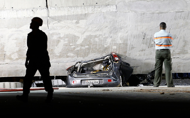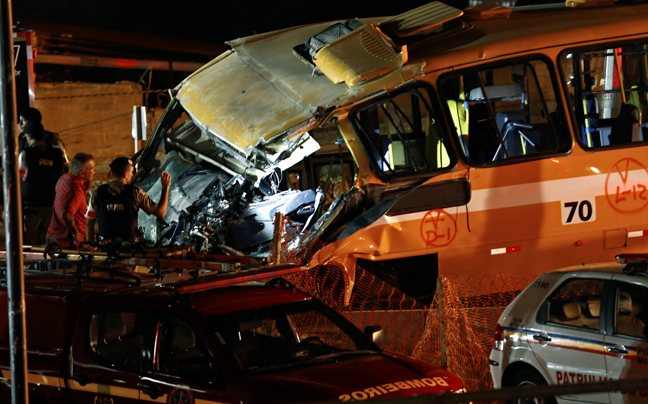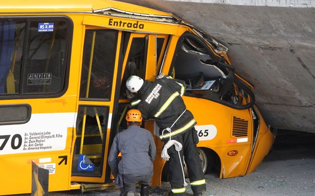 Από την κατάρρευση σκοτώθηκαν δύο άνθρωποι, η μία οδηγός ενός σχολικού λεωφορείου και τραυματίστηκαν άλλοι 22. Το σημείο του δυστυχήματος απέχει 3 περίπου χιλιόμετρα από το στάδιο Μινεϊράο, όπου αναμένεται να διεξαχθεί ένας από τους ημιτελικούς του Μουντιάλ την επόμενη Τρίτη.