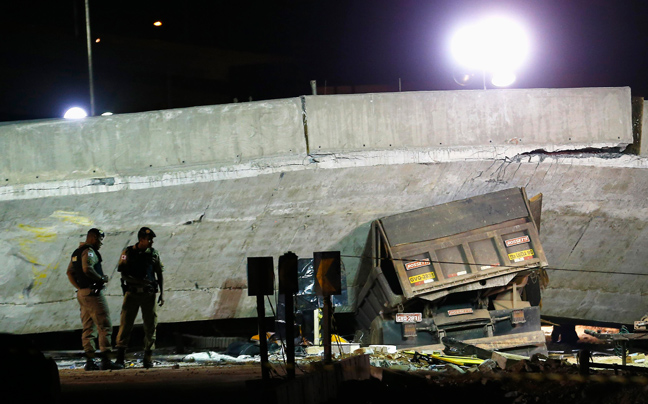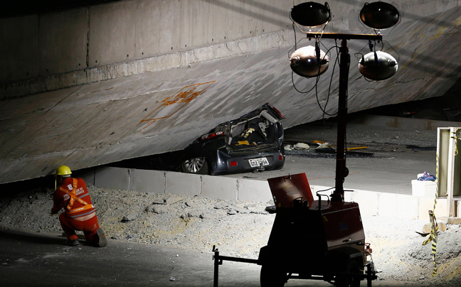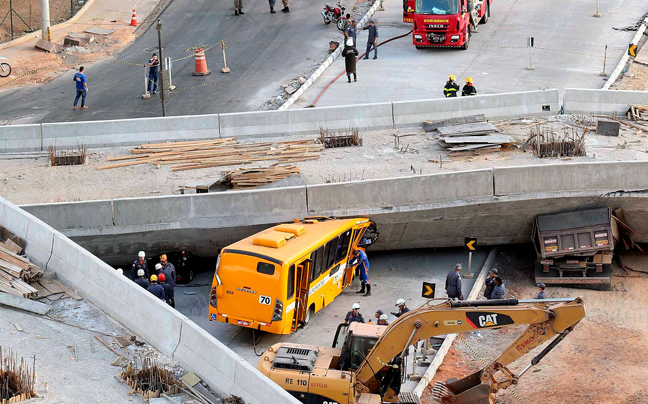 Σκηνή βγαλμένη από ταινία του Χόλιγουντ είναι η στιγμή της κατάρρευσης της υπό κατασκευή γέφυρας που κατέρρευσε σαν χάρτινος πύργος στο Μπέλε Οριζόντε, μια από τις πόλεις που φιλοξενούν το Μουντιάλ της Βραζιλίας.