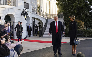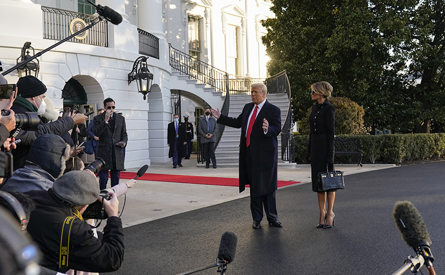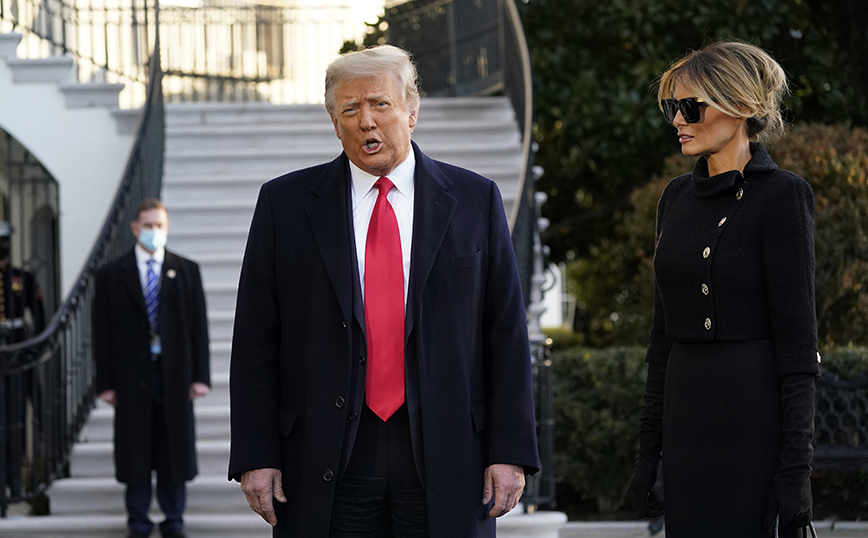 ΟΝτόναλντ Τραμπ, μαζί με τη σύζυγό του Μελάνια, αναχώρησε από τον Λευκό Οίκο επιβαίνοντας στο Marine One, το ελικόπτερο του Σώματος των Πεζοναυτών.
