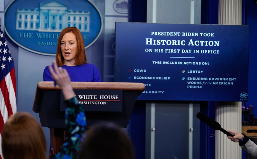 Η Ψάκι στην πρώτη της επίσημη ενημέρωση ως εκπρόσωπος Τύπου του Λευκοί Οίκου, τόνισε πως ο Μπάιντεν της ζήτησε να διασφαλίσει ότι επικοινωνούμε για τις πολιτικές της κυβέρνησης και να φέρει πίσω την αλήθεια και την διαφάνεια.