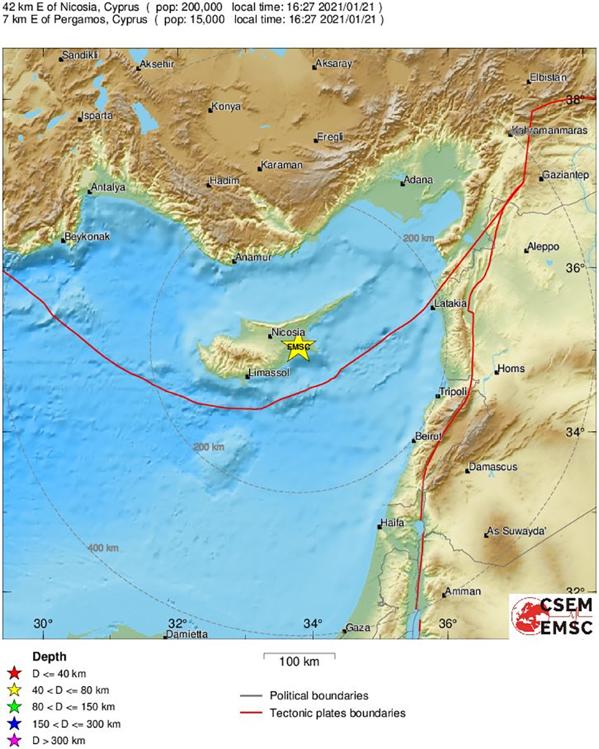 Ισχυρός σεισμός σημειώθηκε στις 16:27 στην Κύπρο, μεγέθους 5,1 βαθμών της κλίμακας Ρίχτερ σύμφωνα με το Ευρωμεσογειακό ινστιτούτο.