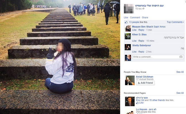 Μετά τις selfies σε νεκροταφεία, ήρθε η νέα μόδα των εφήβων να εγείρει σοβαρά ερωτήματα: Αυτοπροαίρετα στο στρατόπεδο συγκέντρωσης του Άουσβιτς. Νεαροί από το Ισραήλ επισκέπτονται το χώρο εξόντωσης αιχμαλώτων, κυρίως Εβραίων, της Ναζιστικής Γερμανίας και ποζάρουν χαρωποί μπροστά από το φακό των smartphones. Στη συνέχεια αναρτούν τα καρέ στη σελίδα στο Facebook «With my besties in Auschwitz» (δηλαδή «Με τους φίλους μου στο Άουσβιτς»).