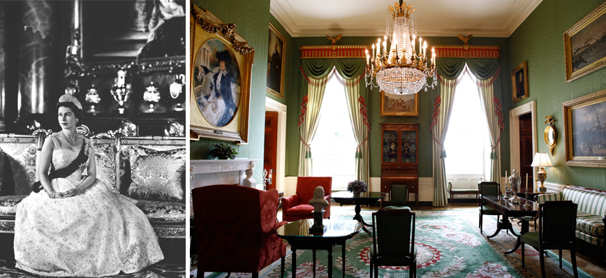 Το Κίτρινο Δωμάτιο στο Παλάτι του Μπάκιγχαμ λειτουργεί συνήθως ως το background για τα επίσημα πορτρέτα της Βασίλισσας, όπως όταν το 2004 ηχογράφησε το χριστουγεννιάτικο μήνυμά της προς το λαό. Από την άλλη, το Κίτρινο Οβάλ Δωμάτιο στο Λευκό Οίκο αποτελεί τμήμα της ιδιωτικής κατοικίας του εκάστοτε Προέδρου, με την πρώτη κυρία Λόρα Μπους να φιλοξενεί σε αυτό το 2006 την πρώτη κυρία του Αζερμπαϊτζάν Mehriban Aliyeva.