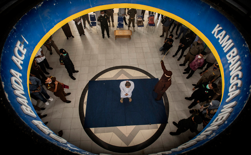 Δύο ομοφυλόφιλοι άντρες ικέτευαν για έλεος καθώς μαστιγώνονταν από 77 φορές ο καθένας στην Ινδονησία σήμερα επειδή κατηγορήθηκαν για παραβίαση του ισλαμικού νόμου.