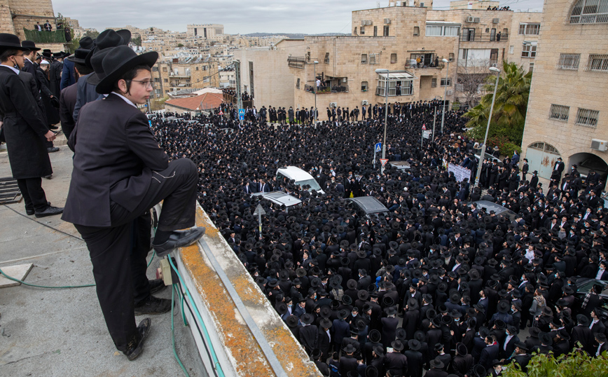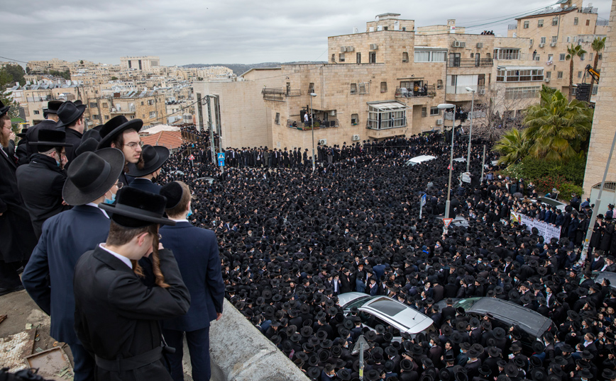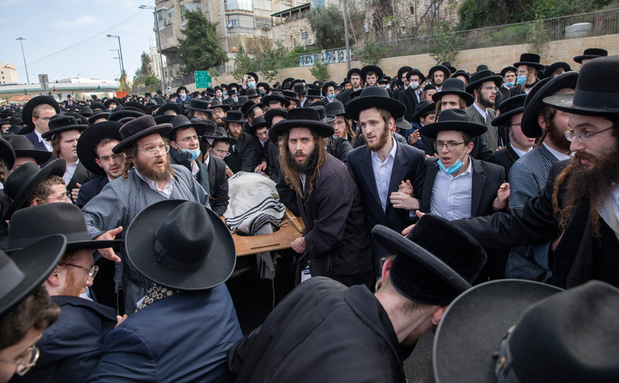 Την Κυριακή χιλιάδες υπερορθόδοξοι Εβραίοι παραβίασαν το lockdown για να συμμετάσχουν στην κηδεία ενός ραβίνου στην Ιερουσαλήμ.