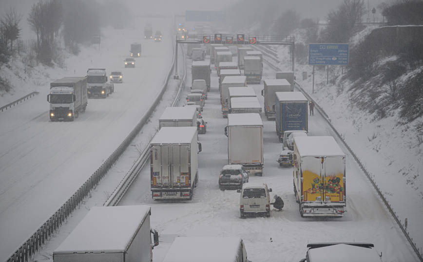 Πολλά οχήματα εγκλωβίστηκαν κάτω από όγκους χιονιού και οι οδηγοί τους αναγκάστηκαν να τα απεγκλωβίσουν με φτυάρια, όπως δείχνουν φωτογραφίες στην ιστοσελίδα της Bild.