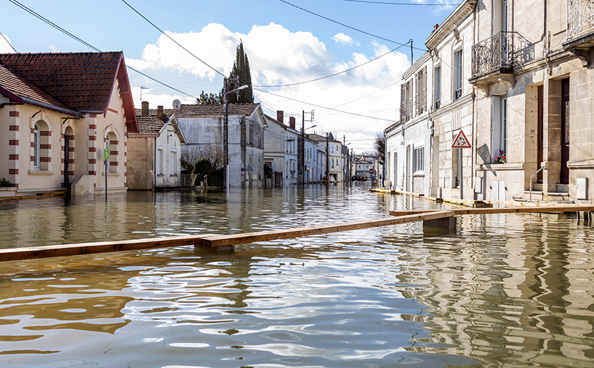 Στην πόλη Κονιάκ, κέντρο παραγωγής μπράντι στον ποταμό Σαράντ, έχουν επίσης πλημμυρίσει δρόμοι.