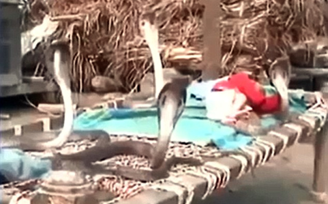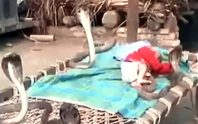 Ένα μωρό κοιμάται και το τριγυρίζουν ζωντανές κόμπρες, οι οποίες μοιάζουν να παίζουν το ρόλο… σωματοφυλάκων. Το –μερικών μηνών- βρέφος κάνει ανήσυχο ύπνο όμως και κάποια στιγμή αγγίζει μία από αυτές, αλλά εκείνη δεν του επιτίθεται.