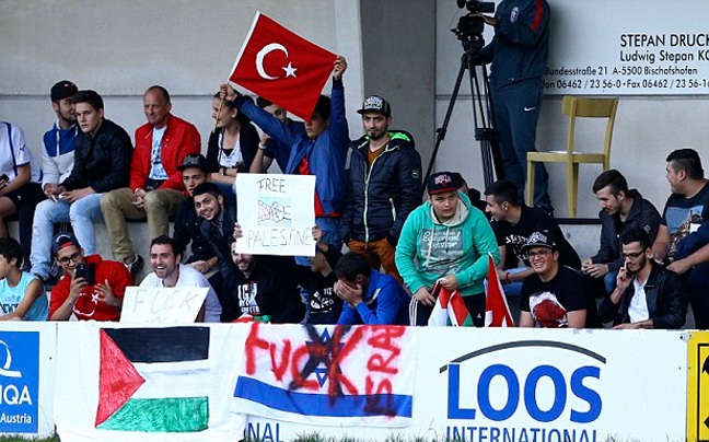 Οι φιλοπαλαιστίνιοι που βρέθηκαν στο γήπεδο για να παρακολουθήσουν τον αγώνα φώναζαν, σύμφωνα με τη Daily Mail, συνθήματα κατά του Ισραήλ, ενώ είχαν μαζί τους σημαίες της Παλαιστίνης και της Τουρκίας.