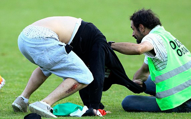 Λίγο πριν το τέλος του αγώνα η ομάδα των οπαδών εισέβαλαν στο γήπεδο με μοναδικό τους στόχο τους παίκτες της Μακάμπι. Οι δύο πλευρές συνεπλάκησαν για λίγη ώρα, καθώς η αντίδραση της αστυνομίας δεν ήταν άμεση.
