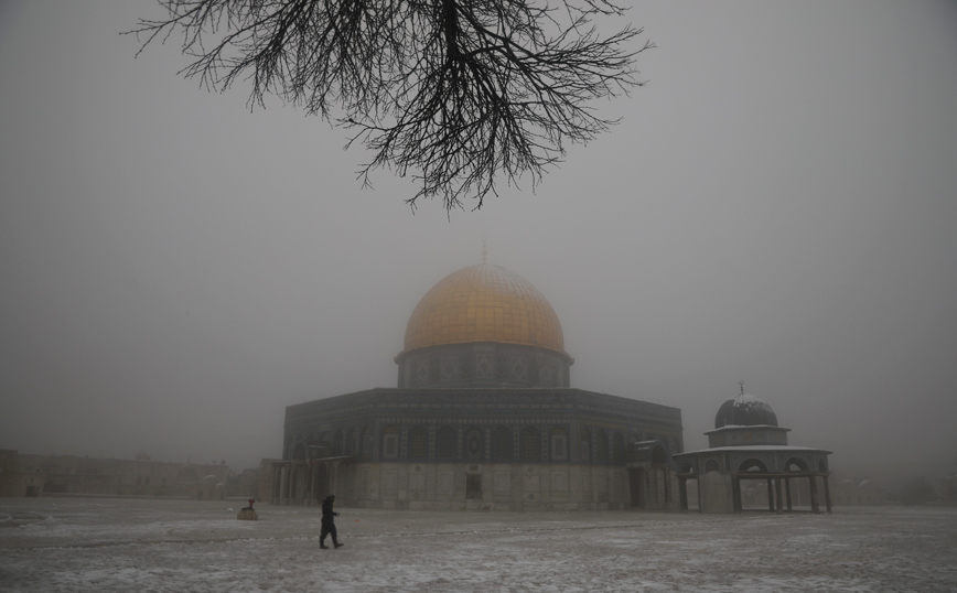 Οι κάτοικοι της Ιερουσαλήμ αντίκρισαν ένα σπάνιο θέαμα την Τετάρτη, αφού είδαν το χιόνι να έχει σκεπάσει τους ιερούς τόπους Εβραίων, Χριστιανών και Μουσουλμάνων που βρίσκονται στην Παλιά Πόλη. Το Τείχος των Δακρύων και ο Θόλος του Βράχου καλύφθηκαν κάτω από ένα λευκό πέπλο, έπειτα από χιονοθύελλα που σημειώθηκε τη νύχτα.