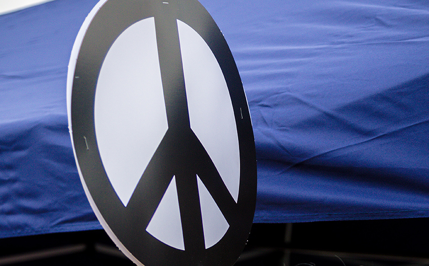 Γυρνάμε στο 1958 και συγκεκριμένα στις 21 Φεβρουαρίου. Τότε ο αντιρρησίας συνείδησης που αρνήθηκε τη στράτευσή του στον Β΄ Παγκόσμιο Πόλεμο, ο εικαστικός Τζέραλντ Χόρτομ με λίγες γραμμές και έναν κύκλο αποτύπωσε την Ειρήνη.