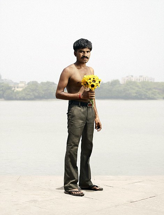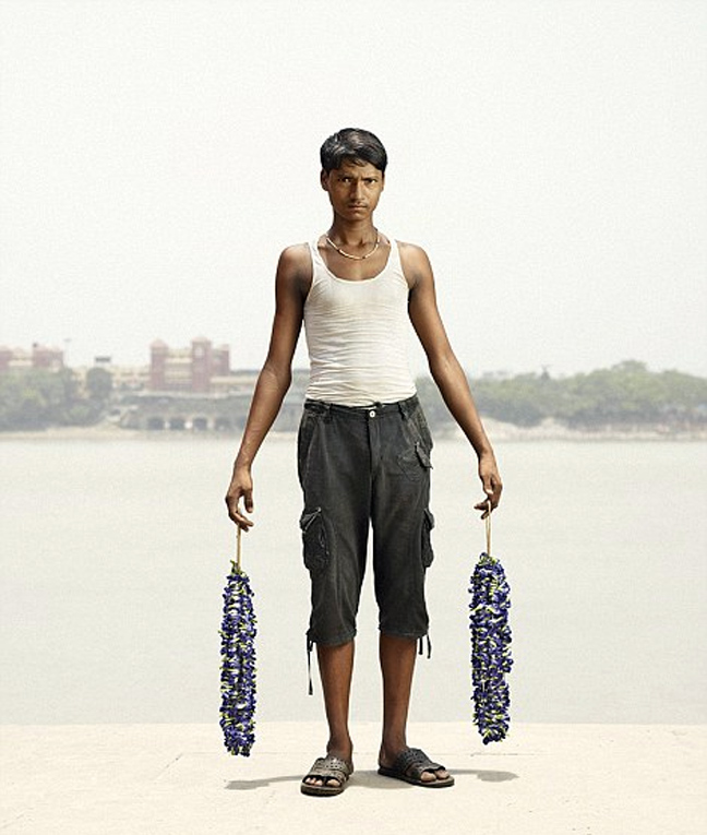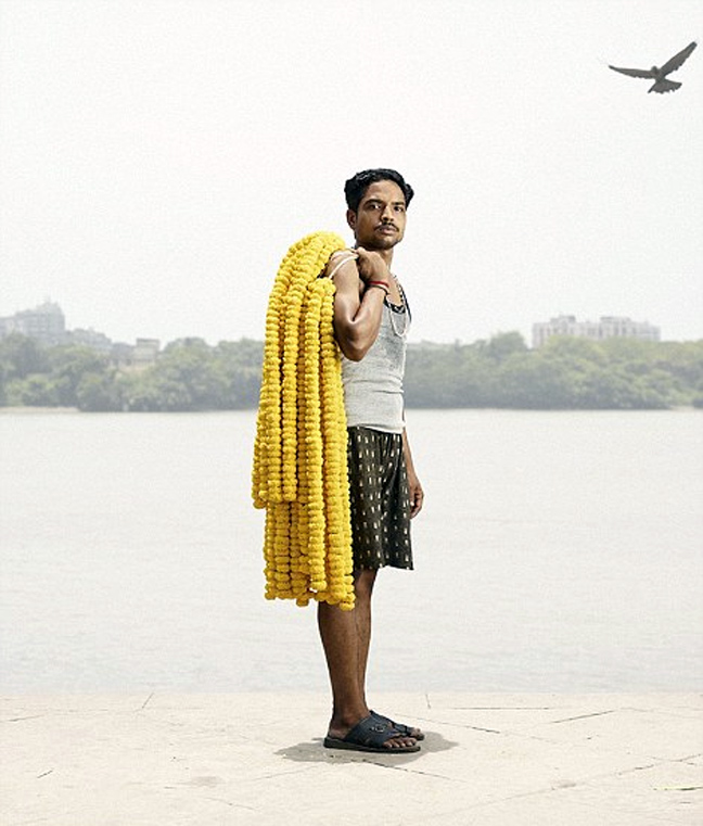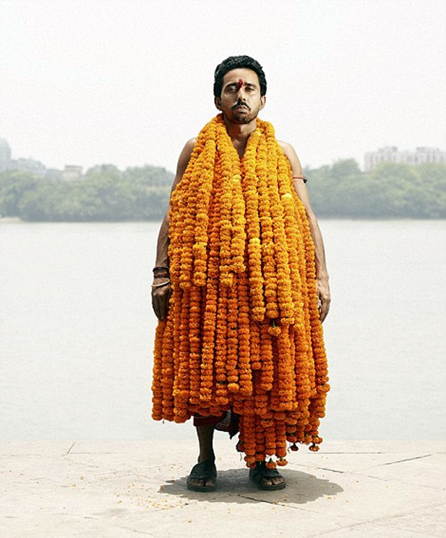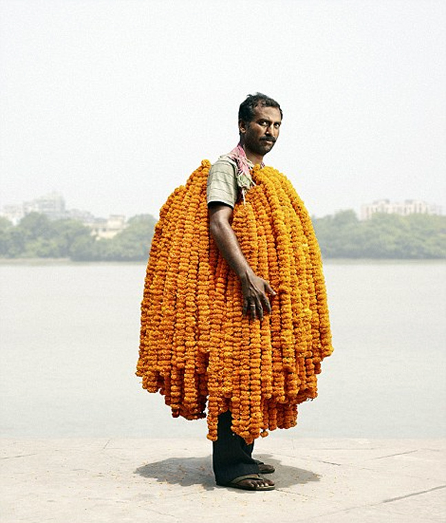 Με γιρλάντες από λουλούδια πάνω στους ώμους τους και με μπουκέτα στο χέρι, οι πωλητές λουλουδιών της Καλκούτα ποζάρουν στο φακό του δανού φωτογράφου Ken Hermann στη διάσημη αγορά της Καλκούτα Mallick Ghat.