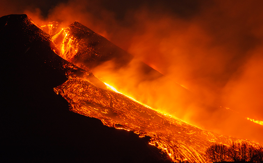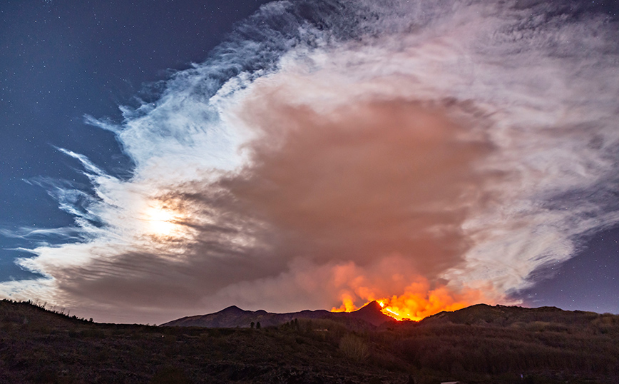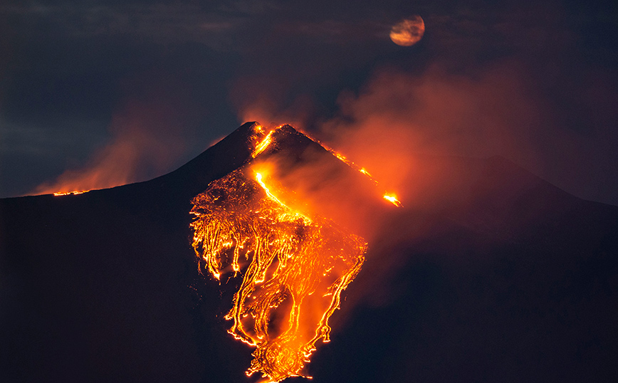 Οι θεαματικές εκρήξεις στην Αίτνα έφτασαν στο αποκορύφωμά τους τη Δευτέρα, όταν τα σιντριβάνια λάβας του ηφαιστείου εκτοξεύθηκαν σε ύψος 1.500 μέτρων, με τους ειδικούς να περιγράφουν το φαινόμενο ως «ένα από τα πιο εντυπωσιακά τις τελευταίες δεκαετίες».