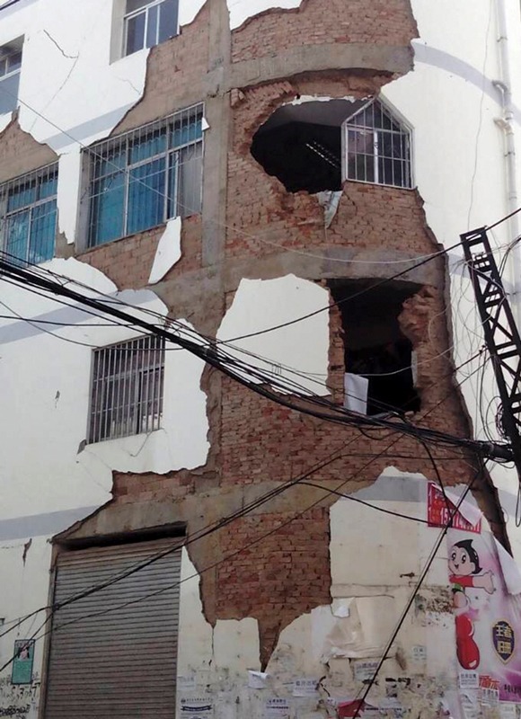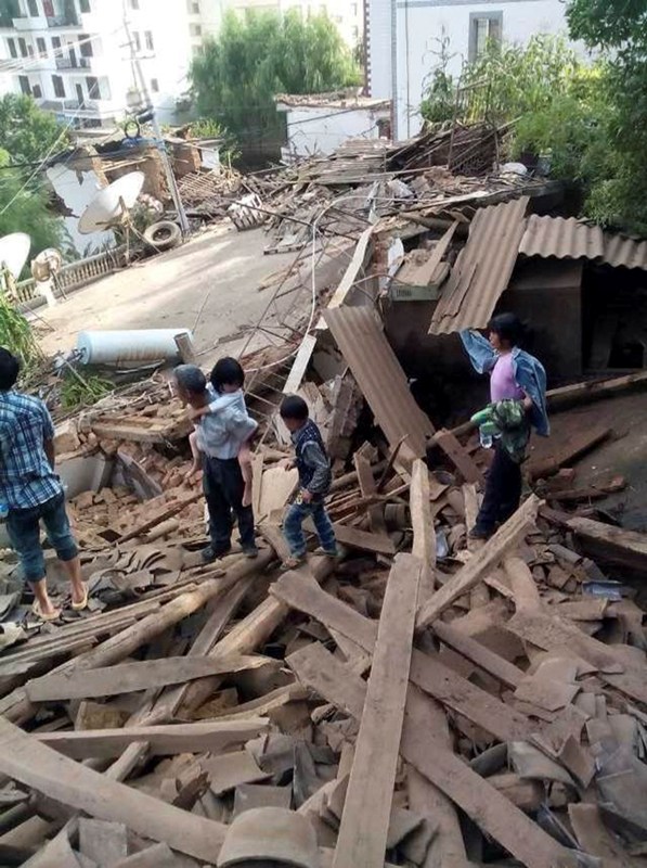 Φωτογραφίες που αναρτήθηκαν στον ιστότοπο κοινωνικής δικτύωσης Weibo από έναν κάτοικο της πόλης δείχνουν ένα πενταώροφο κτίριο του οποίου έχει καταρρεύσει η πρόσοψη, αυτοκίνητα καταπλακωμένα από έναν τοίχο και άνδρες να ψάχνουν στα συντρίμμια ενός μικρού σπιτιού.