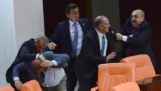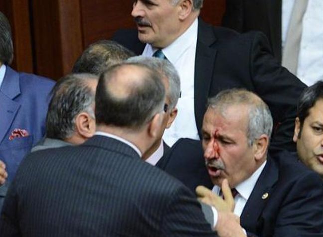 Κατά τη διάρκεια της ψηφοφορίας επί της πρότασης αυτής ο βουλευτής του MHP Αλί Ουζουνιρμάκ κατηγόρησε τους συναδέλφους του τού Κόμματος Δικαιοσύνης και Ανάπτυξης (AKP) του Ερντογάν ότι ψηφίζουν και για λογαριασμό των απόντων και τους χαρακτήρισε “ανέντιμους”. Ο βουλευτής του AKP Μουσταφά Σαχίν απάντησε στον Ουζουνιρμάκ και η λεκτική αντιπαράθεση πολύ γρήγορα εξελίχθηκε σε συμπλοκή.