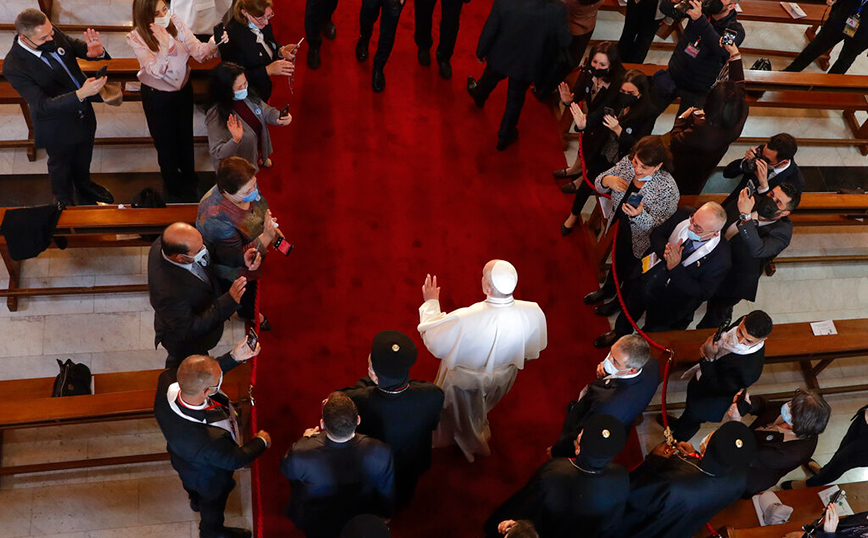 Υπό ισχυρά μέτρα προστασίας και κυκλοφορώντας μόνος, με μάσκα, αφού στη χώρα βρίσκεται σε ισχύ αυστηρό lockdown, ο ποντίφικας μετέβη ως «προσκυνητής της ειρήνης» για να στηρίξει μία από τις αρχαιότερες χριστιανικές κοινότητες που πλήττεται από την βία και τη φτώχεια.