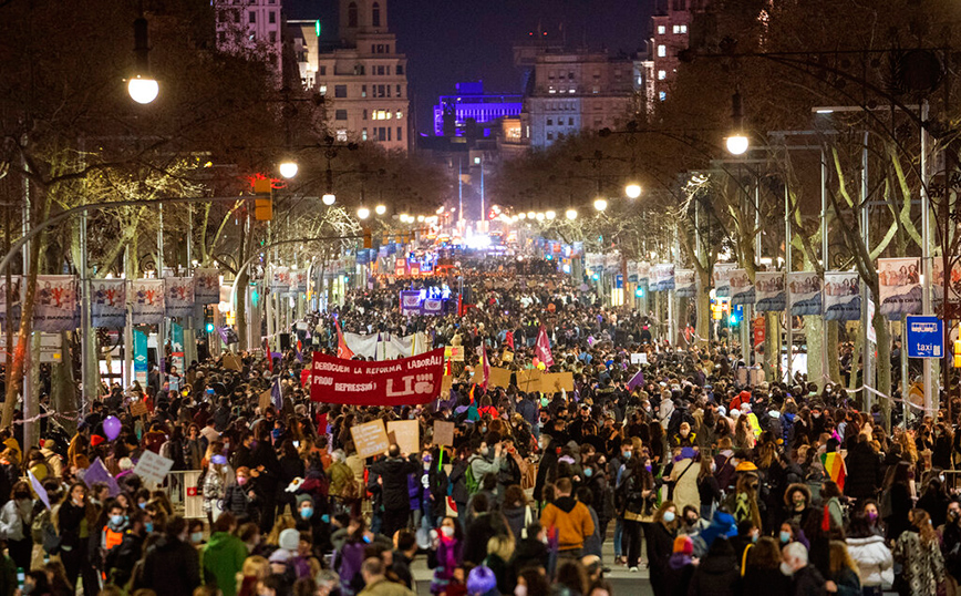 Χιλιάδες γυναίκες στους δρόμους της Ισπανίας διεκδικώντας ίσα δικαιώματα