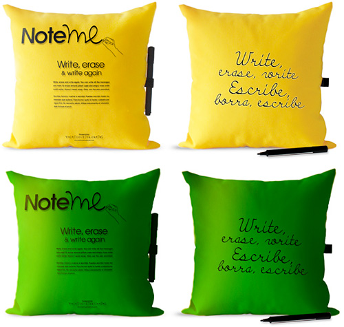 Ονομάζονται «Note Me pillows» και μπορείτε να γράφετε ό,τι θέλετε πάνω σε αυτά. Στη συσκευασία συμπεριλαμβάνεται το ειδικό στυλό και καθαρίζονται εύκολα με κρύο νερό και χωρίς τη χρήση σαπουνιού!