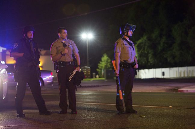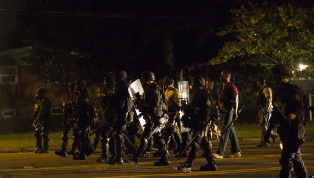 Ο αρχηγός της αστυνομίας του Φέργκιουσον Τομ Τζάκσον δήλωσε πως οι αστυνομικοί επικεντρώνουν τις προσπάθειές τους στη διάλυση του πλήθους, το οποίο ήταν μικρότερο απ’ ό,τι την προηγούμενη νύκτα, αλλά προβαίνουν επίσης σε συλλήψεις και ανέφεραν πως σε ορισμένες περιοχές δέχθηκαν πυρά.