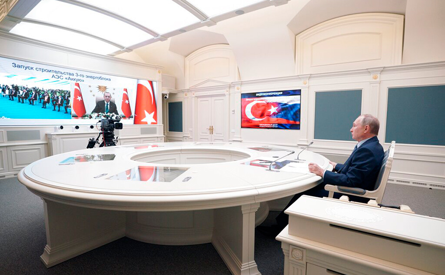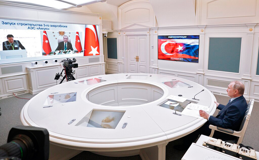 Ο Ρώσος πρόεδρος Βλαντίμιρ Πούτιν και ο Τούρκος πρόεδρος Ρετζέπ Ταγίπ Ερντογάν μέσω μιας σύνδεσης τύπου τηλεδιάσκεψης κήρυξαν σήμερα την έναρξη των κατασκευαστικών εργασιών των κτιριακών εγκαταστάσεων του τρίτου αντιδραστήρα του υπό κατασκευήν πυρηνικού σταθμού «Ακούγιου» στην Τουρκία, η έναρξη της λειτουργίας του οποίου προγραμματίζεται για το 2023.