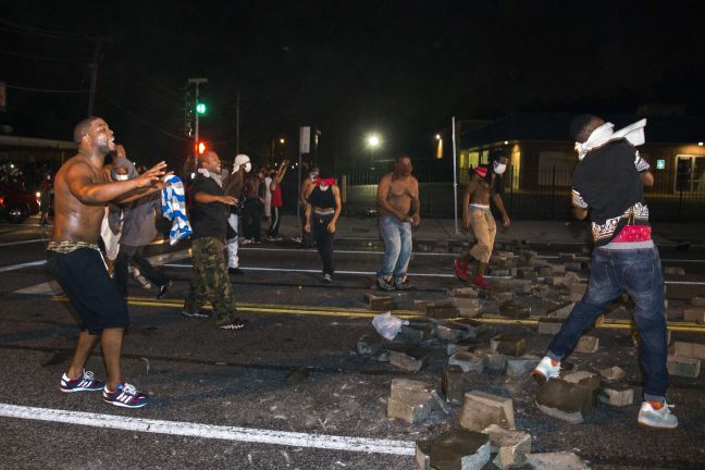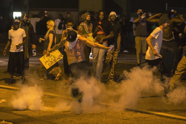 Παρά την απαγόρευση κυκλοφορίας διαδηλωτές συγκρούστηκαν με τις δυνάμεις της τάξης στο Φέργκιουσον, όπου ο Αφροαμερικανός Μάικλ Μπράουν έχασε τη ζωή του από αστυνομικό ο οποίος τον πυροβόλησε τουλάχιστον έξι φορές.
