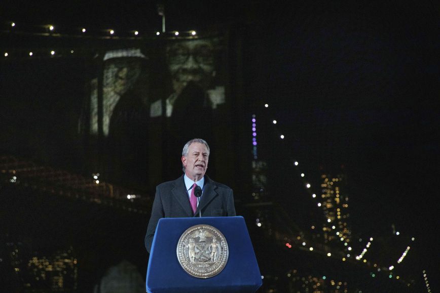 Ο Δημοκρατικός δήμαρχος μίλησε για τους «ήρωες εργαζομένους στους τομείς υγείας» που «έσωσαν ζωές», μερικές φορές εις βάρος τους, και ζήτησε από τους Νεοϋορκέζους να θυμηθούν καλές στιγμές.
