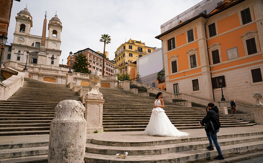 Άκρως ανησυχητικά είναι τα στοιχεία που έρχονται από την Ιταλία και αφορούν την πανδημία του κορονοϊού. Οι αριθμοί δείχνουν αύξηση σε θύματα και μολύνσεις, ενώ οι μνήμες από την εκατόμβη του Μπέργκαμο επέστρεψαν ξανά. Παρόλα αυτά, η ζωή πρέπει να συνεχιστεί, όπως δείχνει ένα μοντέλο στη Ρώμη που φωτογραφίζεται με ένα νυφικό.