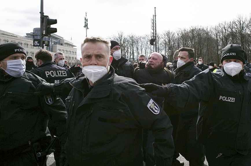 Παράλληλα, η αστυνομία διέλυσε μια μικρή συγκέντρωση 150 ανθρώπων στην Πύλη του Βρανδεμβούργου, στην καρδιά του Βερολίνου, γιατί δεν τηρούνταν οι κανονισμοί, όπως μεταδίδει το πρακτορείο Sputnik επικαλούμενο την τοπική αστυνομία.