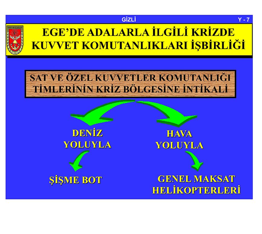 Η παρουσίαση αναφέρει το πως ο τουρκικός στρατός θα κινηθεί προκειμένου να καταλάβει τα νησιά και νησίδες, με ανάπτυξη ειδικών δυνάμεων από αέρα και θάλασσα.
