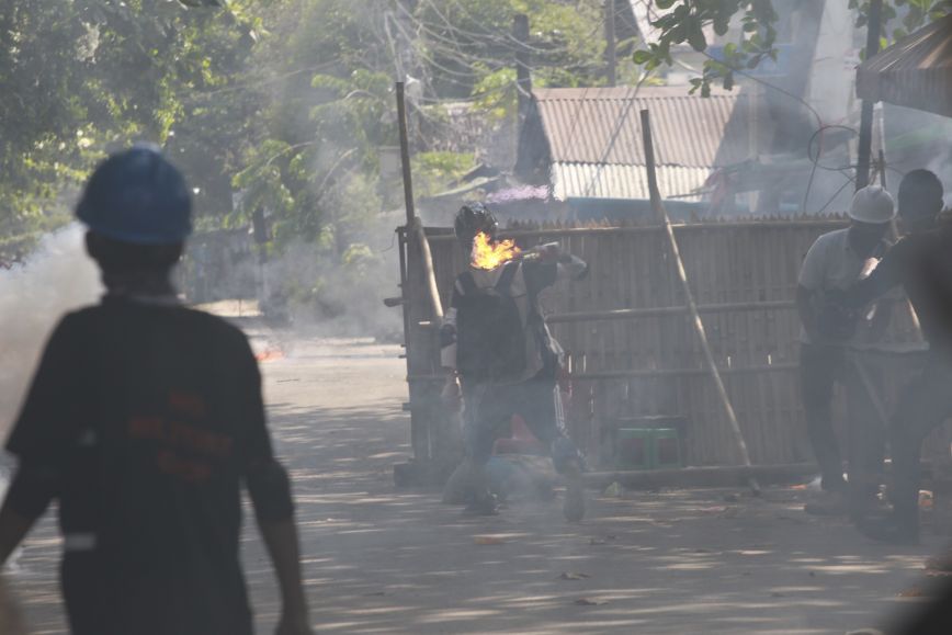 Στην Τακέτα, συνοικία της Ρανγκούν, οι δυνάμεις επιβολής της τάξης άνοιξαν πυρ εναντίον διαδηλωτών, που αντέδρασαν πετώντας τους κοκτέιλ μολότοφ. Ένας κάτοικος, που ζήτησε να μην κατονομαστεί, ανέφερε πως έφηβος σκοτώθηκε όταν χτυπήθηκε από σφαίρα στο κεφάλι.