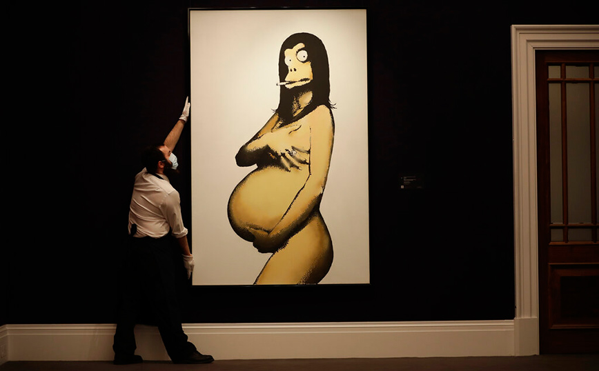 Ο πίνακας του Μπάνκσι που παρωδεί ένα εξώφυλλο του περιοδικού Vanity Fair, στο οποίο εικονιζόταν γυμνή η εγκυμονούσα τότε ηθοποιός Ντέμι Μουρ εκτιμάται ότι θα πουληθεί έναντι 2-3 εκατομμυρίων λιρών. Ο πίνακας έχει ύψος πάνω από δύο μέτρα και παρουσιάζει μια έγκυο που φοράει μάσκα πιθήκου και καπνίζει ένα τσιγάρο.