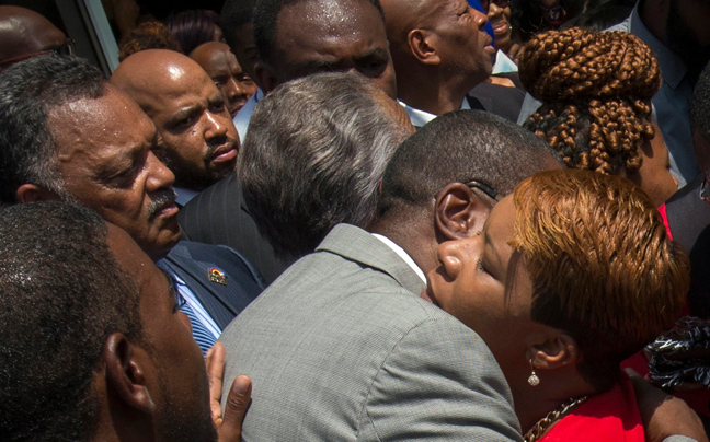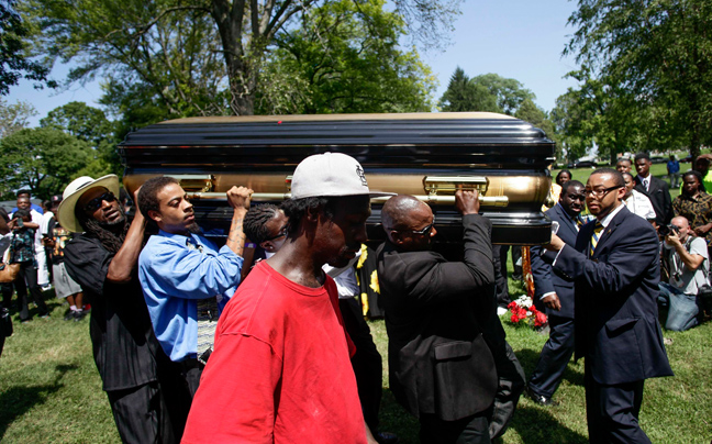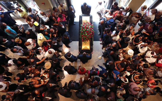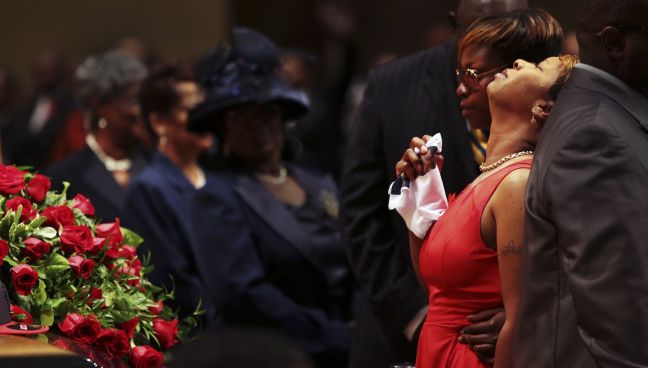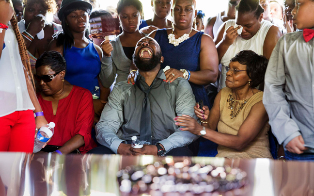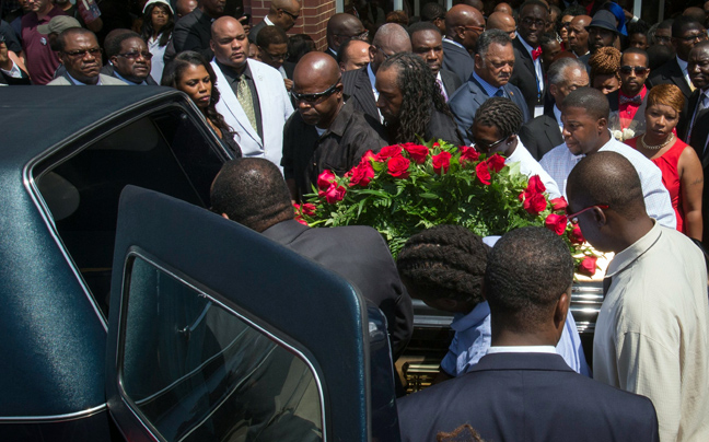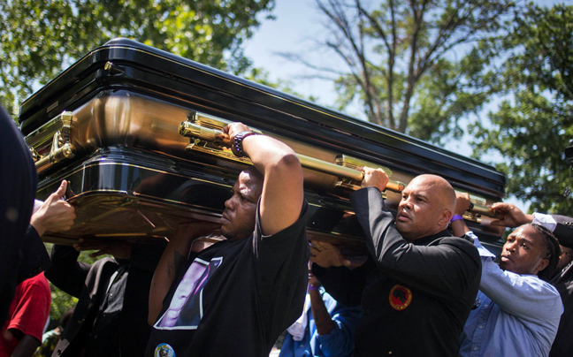 Το τελευταίο αντίο είπαν χθες στον 18χρονο Μάικλ Μπράουν, που έπεσε νεκρός από πυρά αστυνομικού στο Φέργκιουσον του Μιζούρι των Ηνωμένων Πολιτειών Αμερικής, εκατοντάδες άνθρωποι.