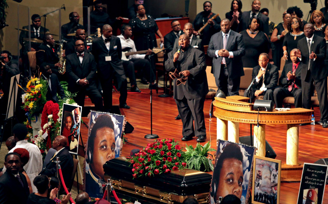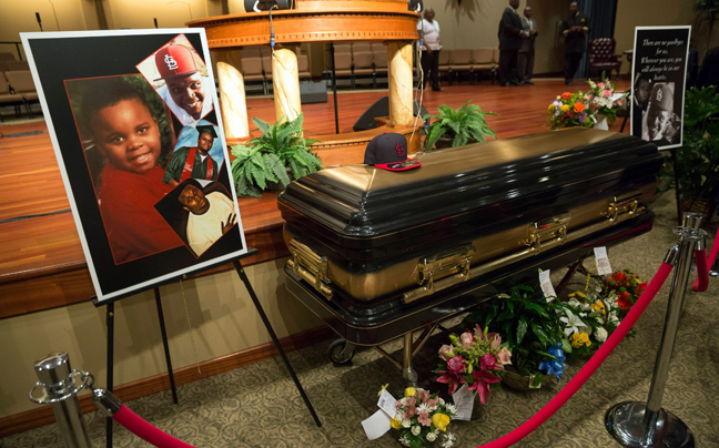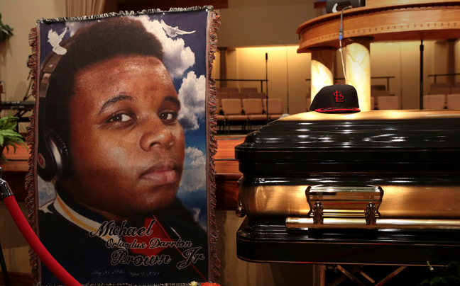 Πλήθος κόσμος συνέρευσε χθες στην Εκκλησία των Βαπτιστών «Friendly Temple», όπου ψάλονταν η νεκρώσιμη ακολουθία, για να αποχαιρετίσει το νεαρό. «Αύριο το μόνο που ζητώ είναι ειρήνη και ησυχία», τόνισε ο πρεσβύτερος Μάικλ Μπράουν, κατά τη διάρκεια διαδήλωσης στο Σεντ Λούις. Τραγική φιγούρα η μητέρα του Lesley McSpadden, που υποβασταζόμενη έκλαιγε πάνω από το φέρετρο του παιδιού της, μην μπορώντας να πιστέψει ότι ο γιος της χάθηκε όταν αστυνομικός τον πυροβόλησε την ώρα που περπατούσε.