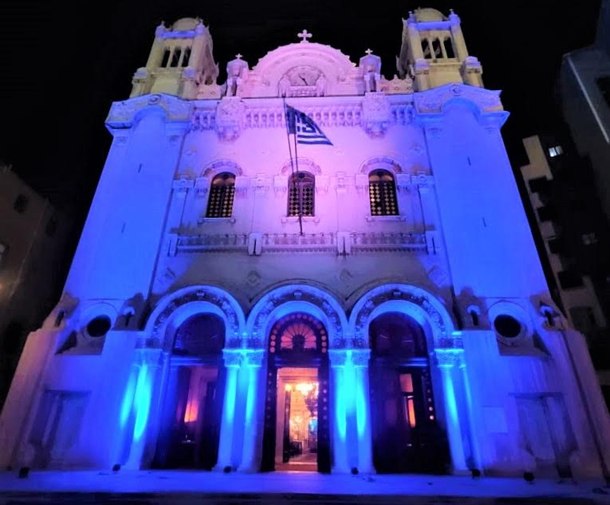 Στα χρώματα της ελληνικής σημαίας φωτίζεται αυτές τις ημέρες ο ιστορικός ναός του Ευαγγελισμού στην Αλεξάνδρεια της Αιγύπτου, μία από μεγαλύτερες εκκλησίες της ομογένειας, καθώς η ελληνική κοινότητα αποφάσισε να συμμετέχει ενεργά στους εορτασμούς για τα 200 χρόνια από την Ελληνική Επανάσταση του 1821.