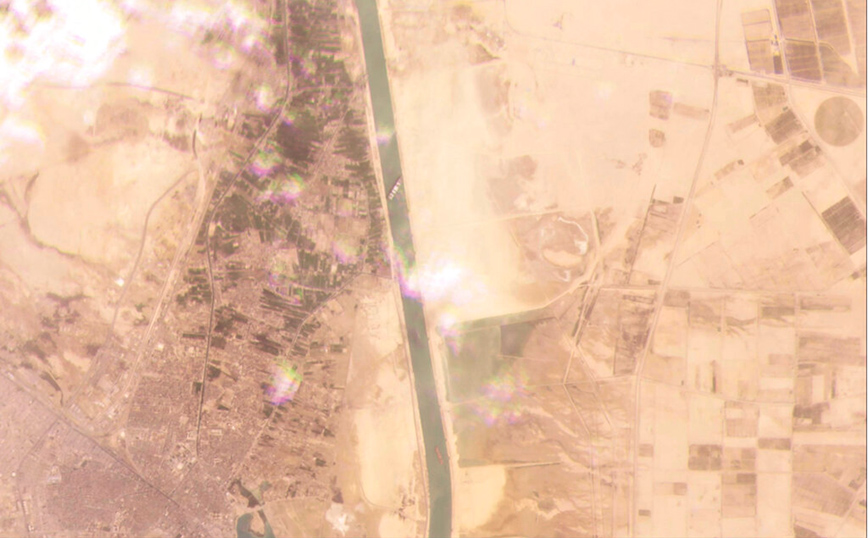 Σύμφωνα με την Αρχή της Διώρυγας του Σουέζ, το συμβάν οφείλεται σε αμμοθύελλα, με ανέμους 40 κόμβων, ένα φαινόμενο συνηθισμένο αυτήν την περίοδο του έτους στην Αίγυπτο, που προκάλεσε πρόβλημα ορατότητας.