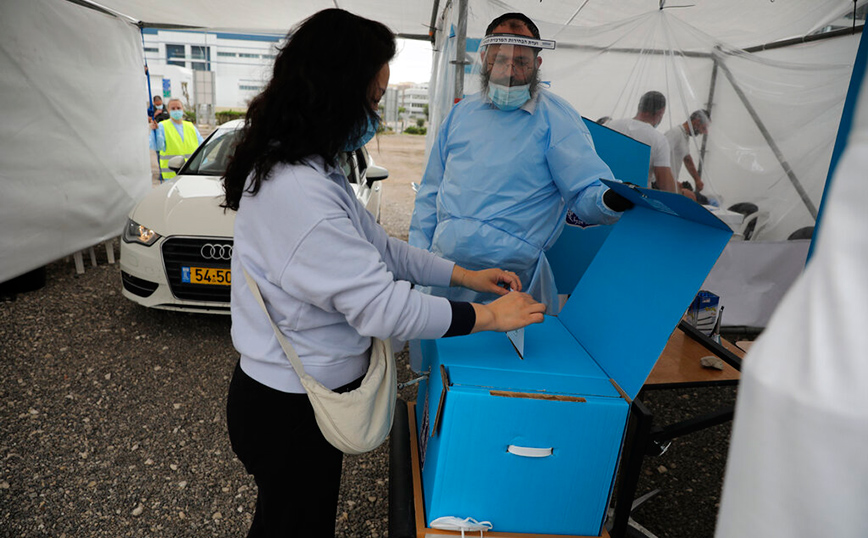 Πρωτοφανείς εικόνες συνόδευσαν την εκλογική αναμέτρηση στο Ισραήλ εν μέσω πανδημίας του κορονοϊού, με τους πολίτες να ψηφίζουν ακόμα και με drive through ή μέσα από τα νοσοκομεία.