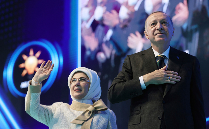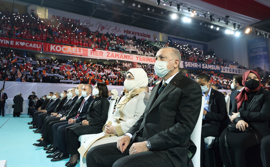 Το περιστατικό σημειώθηκε την περασμένη Τετάρτη στο συνέδριο του κυβερνώντος Κόμματος Δικαιοσύνης και Ανάπτυξης (AKP). Στο βίντεο φαίνεται η Εμινέ Ερντογάν να παρεμβαίνει και να ζητά από το πλήθος να κρατήσει αποστάσεις από τον σύζυγό της.