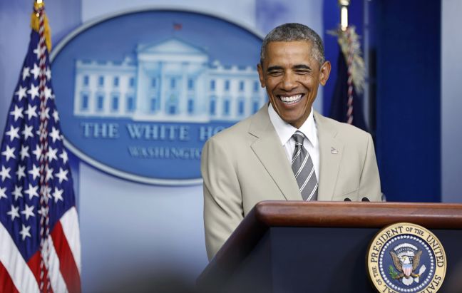 Αυτό φάνηκε και χθες κατά τη διάρκεια συνέντευξης Τύπου στο Λευκό Οίκο. Και μπορεί ο αμερικανός πρόεδρος να μίλησε για όλα τα σπουδαία παγκόσμια ζητήματα, όπως η κρίση στην Ουκρανία και ο κίνδυνος από το Ισλαμικό Κράτος στη Συρία και το Ιράκ, αλλά αυτό που έκανε μεγαλύτερη εντύπωση, ειδικά στα μέσα κοινωνικής δικτύωσης, ήταν η επιλογή του χρώματος στο σακάκι του προέδρου Ομπάμα.