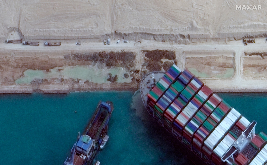 Το πλοίο δέχθηκε την περασμένη εβδομάδα πολύ ισχυρό και αιφνιδιαστικό άνεμο, στον οποίο αποδίδεται η στροφή του και η προσάραξή του σε σημείο που έκλεινε το εμπορικό πέρασμα του Σουέζ, που συνδέει Ασία και Ευρώπη.