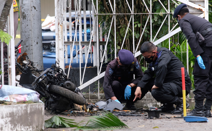 Έξω από τον καθεδρικό ναό στο νησί Σουλαουέζι υπάρχουν ανθρώπινα κομμάτια μετά την ισχυρή έκρηξη που σημειώθηκε περίπου στις 10:30 τοπική ώρα χθες.