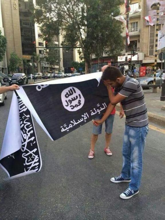 Το περασμένο Σάββατο, τρεις Λιβανέζοι διαμαρτυρήθηκαν στη Βηρυτό κατά του ισλαμικού κράτους βάζοντας φωτιά στη σημαία της εξτρεμιστικής ομάδας, ένα μαύρο πανό όπου αναγράφεται μουσουλμανικό δόγμα «δεν υπάρχει θεός, αλλά ο Θεός και ο Μωάμεθ είναι οι προφήτες του».