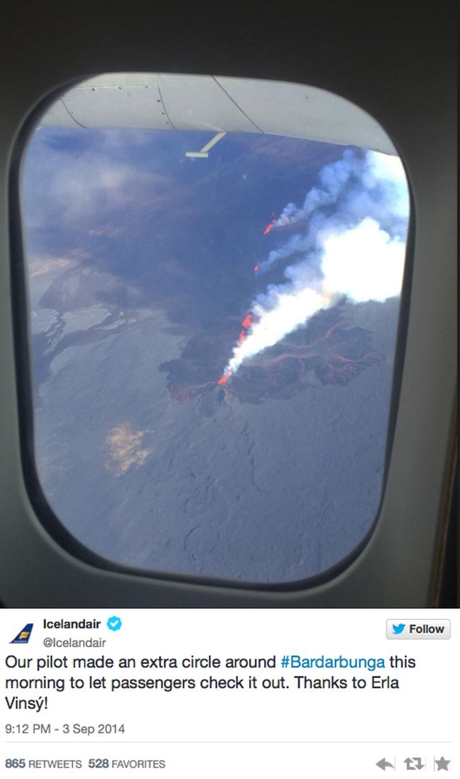 Σε μία αν μη τι άλλο ασυνήθιστη «παράκαμψη» προέβη ένας πιλότος της αεροπορικής εταιρίας Icelandair, ο οποίος αποφάσισε να αλλάξει πορεία, καθυστερώντας την άφιξη της πτήσης για να περάσει τους επιβάτες πάνω από το ηφαίστειο Bardarbunga.